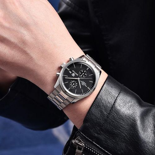 Son mouvement précis, son chronographe fonctionnel et sa fabrication robuste garantissent une montre fiable, durable et conçue pour accompagner votre quotidien avec classe. Une pièce idéale pour ceux qui recherchent un style masculin, affirmé et sans compromis.