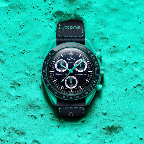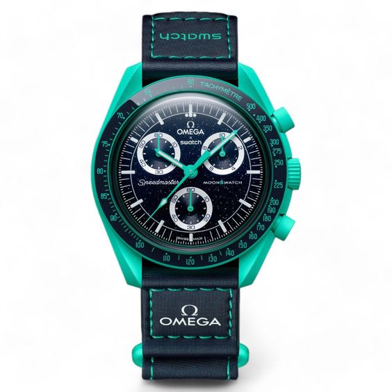 Mystérieuse et envoûtante, la Mission on Earth: Polar Lights rend hommage à la magie des aurores boréales. Née de la collaboration iconique entre Omega et Swatch, cette montre capture l’éclat fascinant des lumières polaires à travers un design bleu profond et des nuances lumineuses inspirées du ciel arctique. Élégante et unique, elle incarne l’harmonie entre beauté naturelle et savoir-faire horloger.