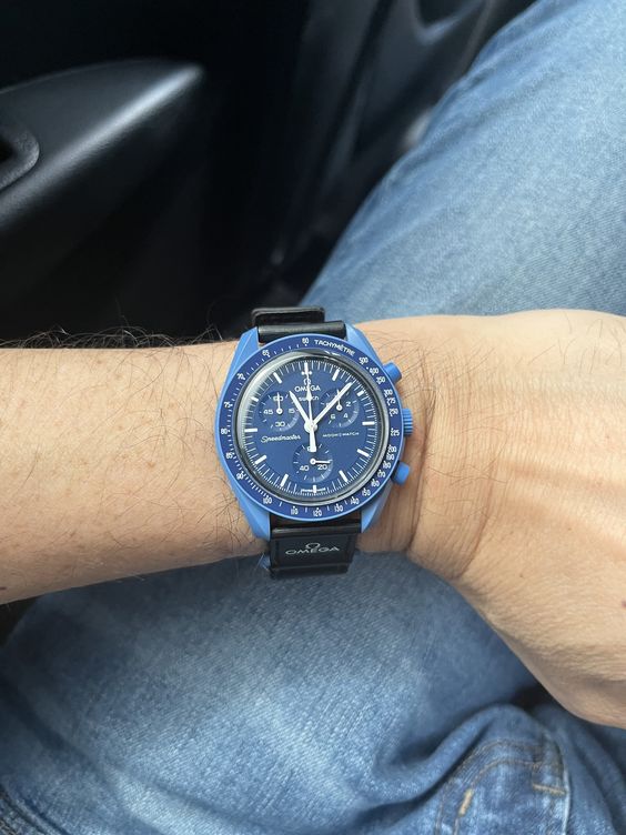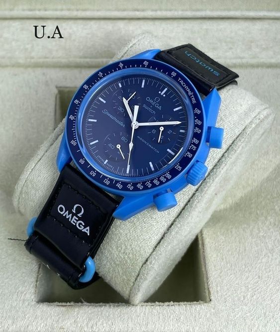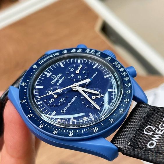 Mystérieuse et puissante, la Mission to Neptune incarne la profondeur et la force de la planète bleue la plus lointaine du système solaire. Issue de la collaboration iconique entre Omega et Swatch, cette montre séduit par sa couleur bleu marine intense et son design captivant. Symbole d’aventure, de caractère et d’élégance, elle est faite pour ceux qui n’ont pas peur d’explorer l’inconnu.