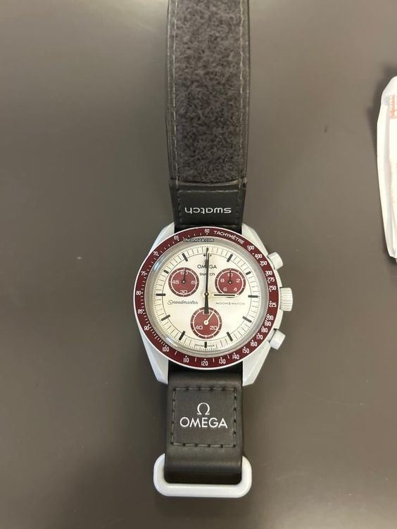 Bracelet : Velcro bordeaux avec logo MoonSwatch