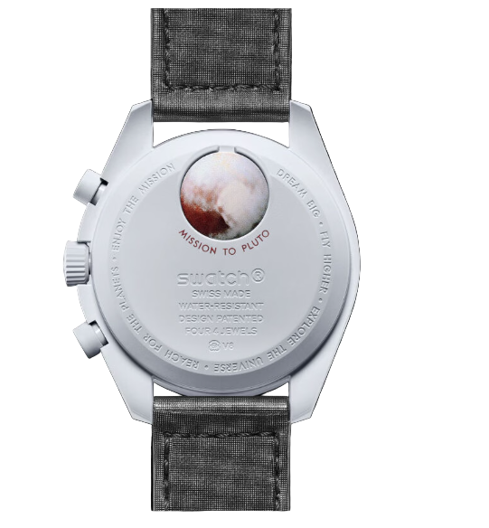 Discrète, élégante et pleine de caractère, la Mission to Pluto rend hommage à la planète naine la plus mystérieuse du système solaire. Née de la collaboration emblématique entre Omega et Swatch, cette montre séduit par son design harmonieux mêlant douceur et sophistication. Avec ses nuances de gris et de bordeaux, elle capture l’esprit lointain et glacé de Pluton.